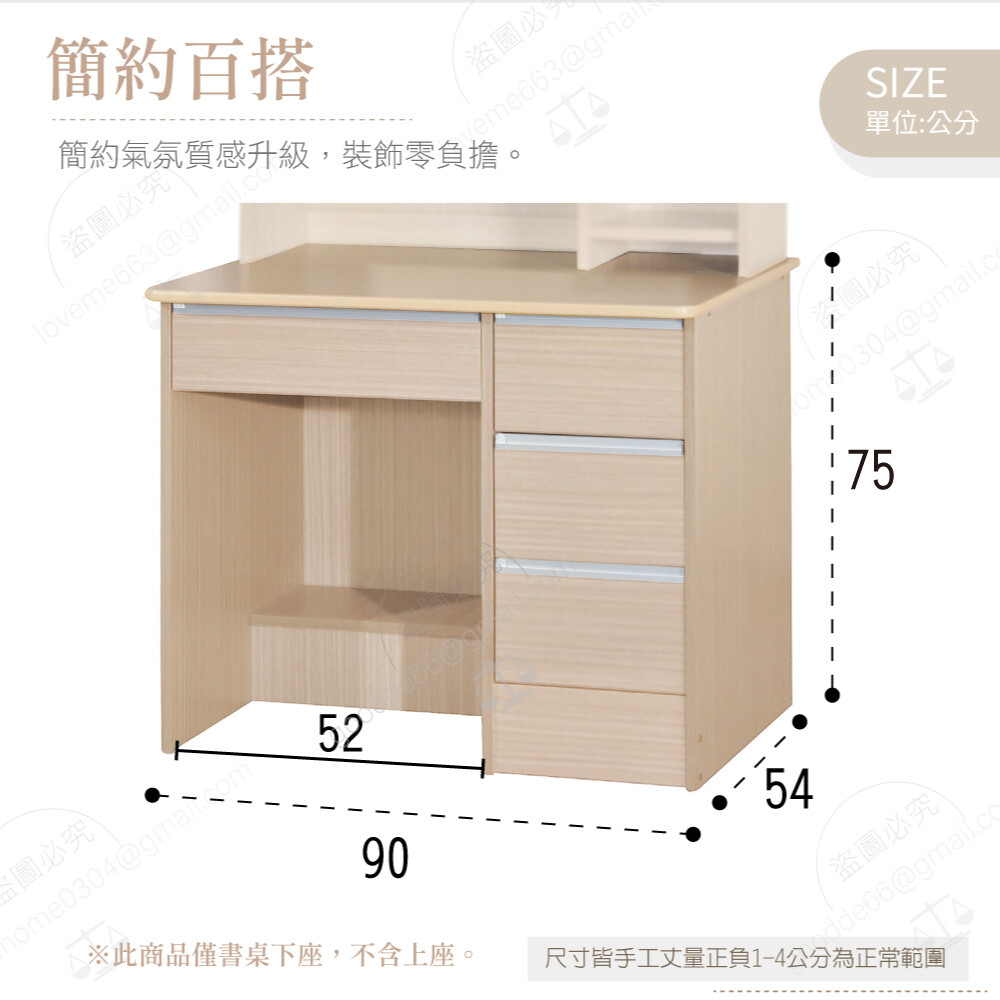 《奈斯家具Nice》264-04-HV 512白橡3尺書桌/下座