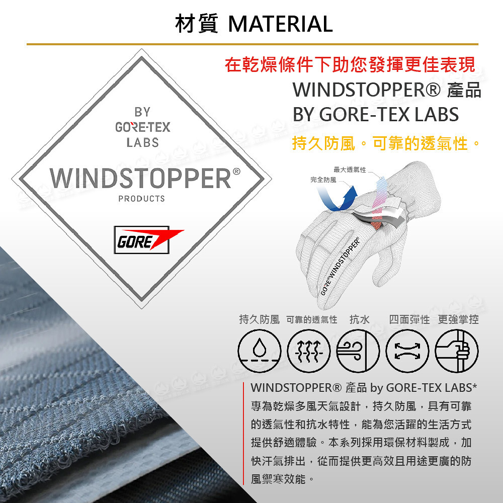 材質:Gore-Tex WINDSTOPPER 92% Recycled Polyester, 8% Polyurethane