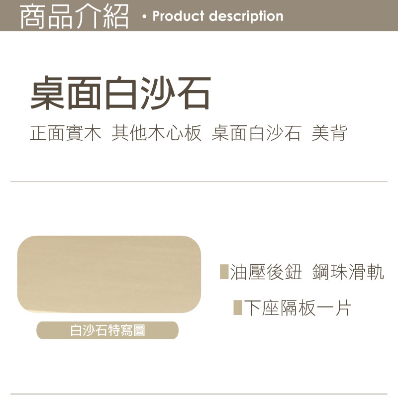 正面實木 其他木心板 桌面白沙石