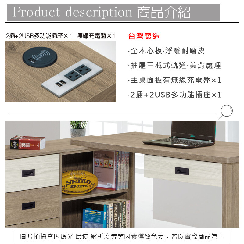 《奈斯家具Nice》854-2-HV 路易士灰橡色L型多功能書桌全組