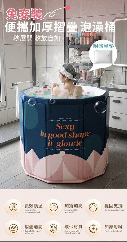 內容物:注水坐墊x1/彈力排水管x1/收納袋x1/摺疊澡桶主體x1