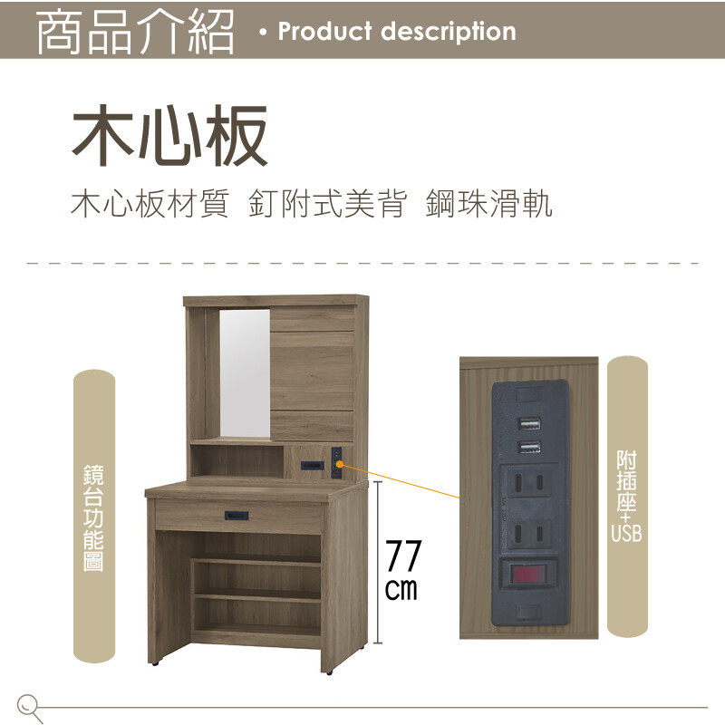 《奈斯家具Nice》152-03-HV 灰橡2.6尺鏡台/化妝台/含椅