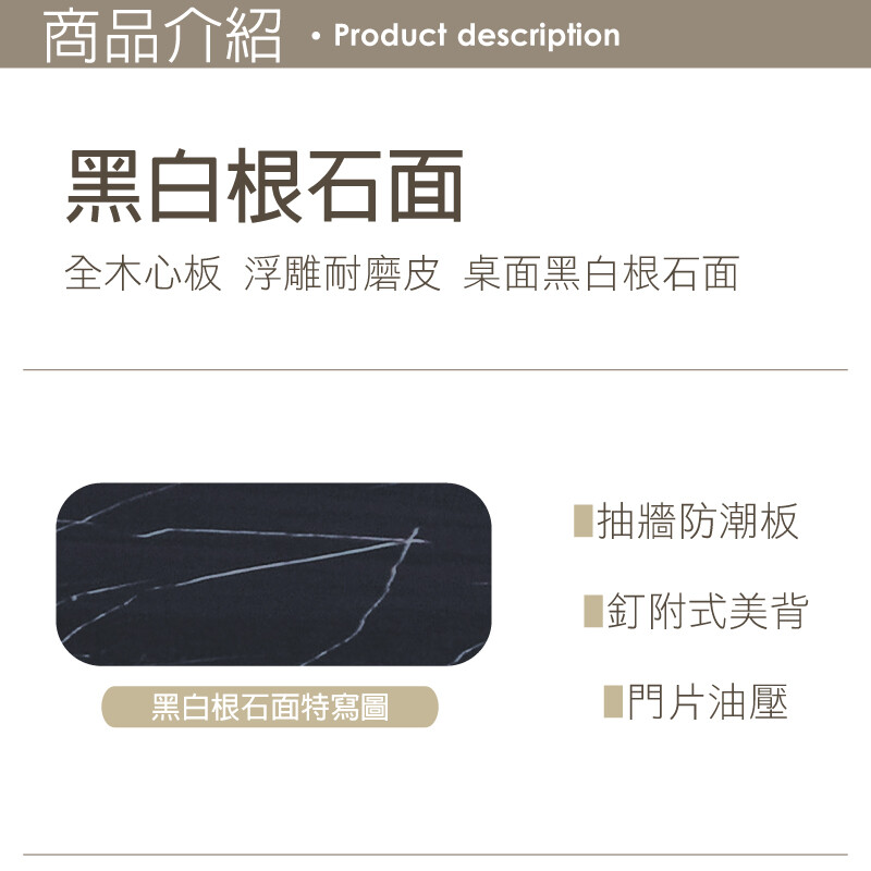 全木心板 黑白根石面桌面