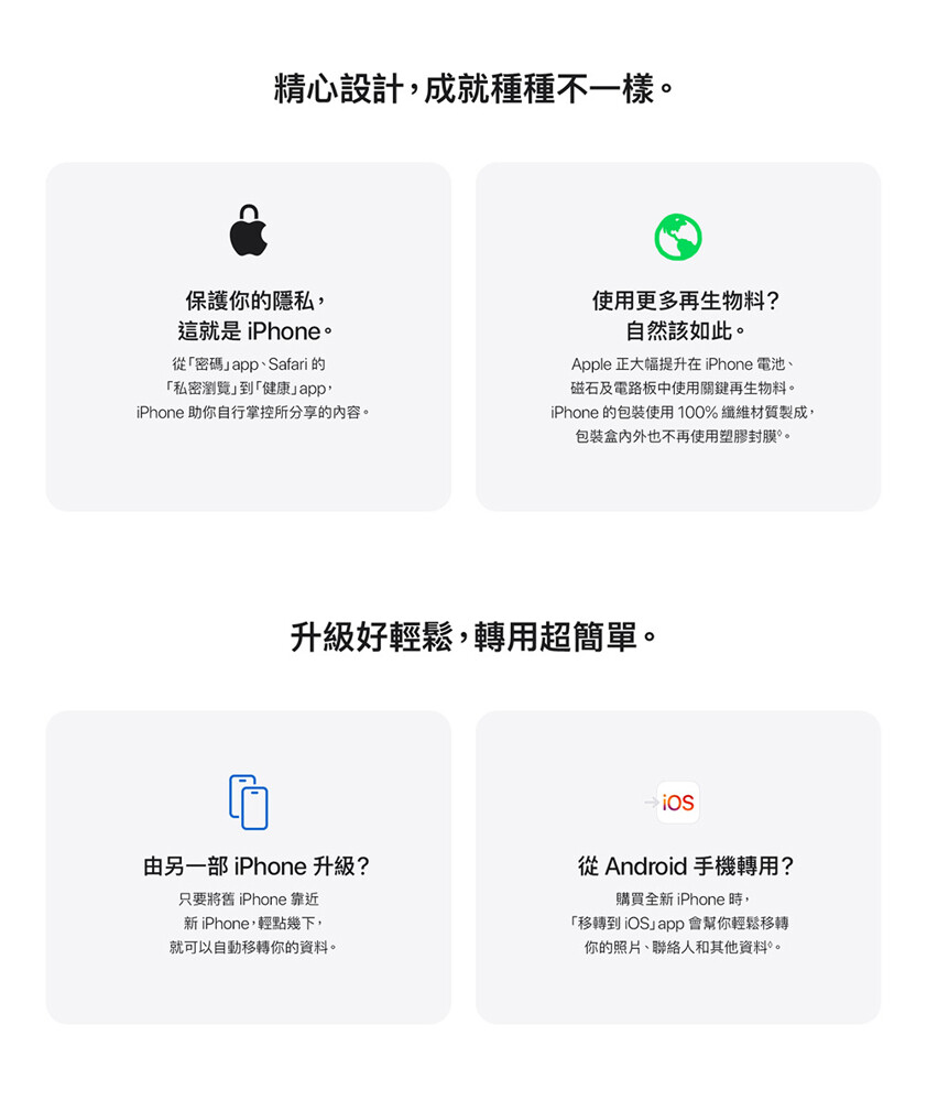 ★2020年起APPLE因環保考量,智慧型手機原盒裝內無提供充電頭及耳機(可另至官網購買或本賣場洽詢)。