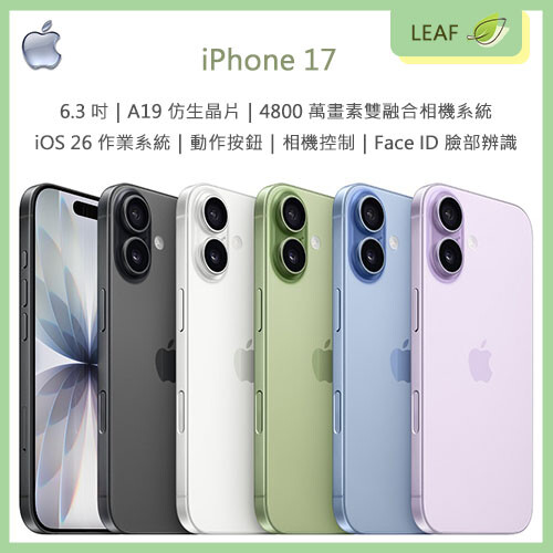 #公司貨 #Apple #iPhone17 #256G #512G #6.3吋 #iOS26作業系統 #4800萬畫融合主相機 #相機控制 #FaceID #A19仿生晶片 #智慧型手機