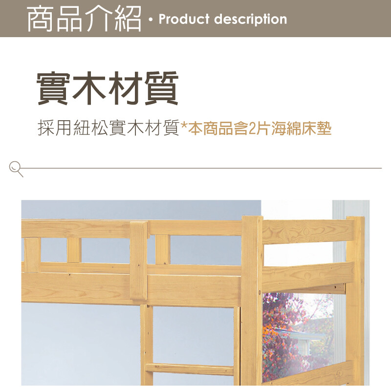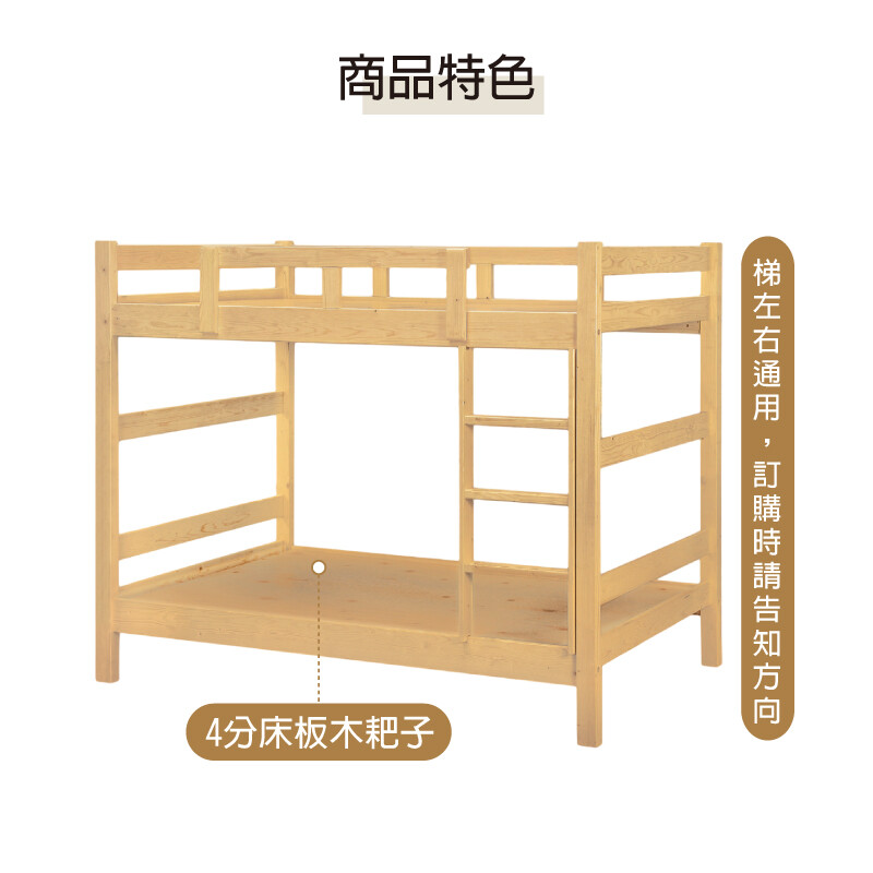 《奈斯家具Nice》119-04-HV 凱斯3.5尺原木色雙層床/含海綿床墊