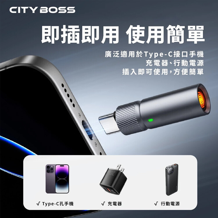 CITY BOSS 迷你Type-C點煙器 吹氣點火鎢絲發熱 防風點菸器-2個一組