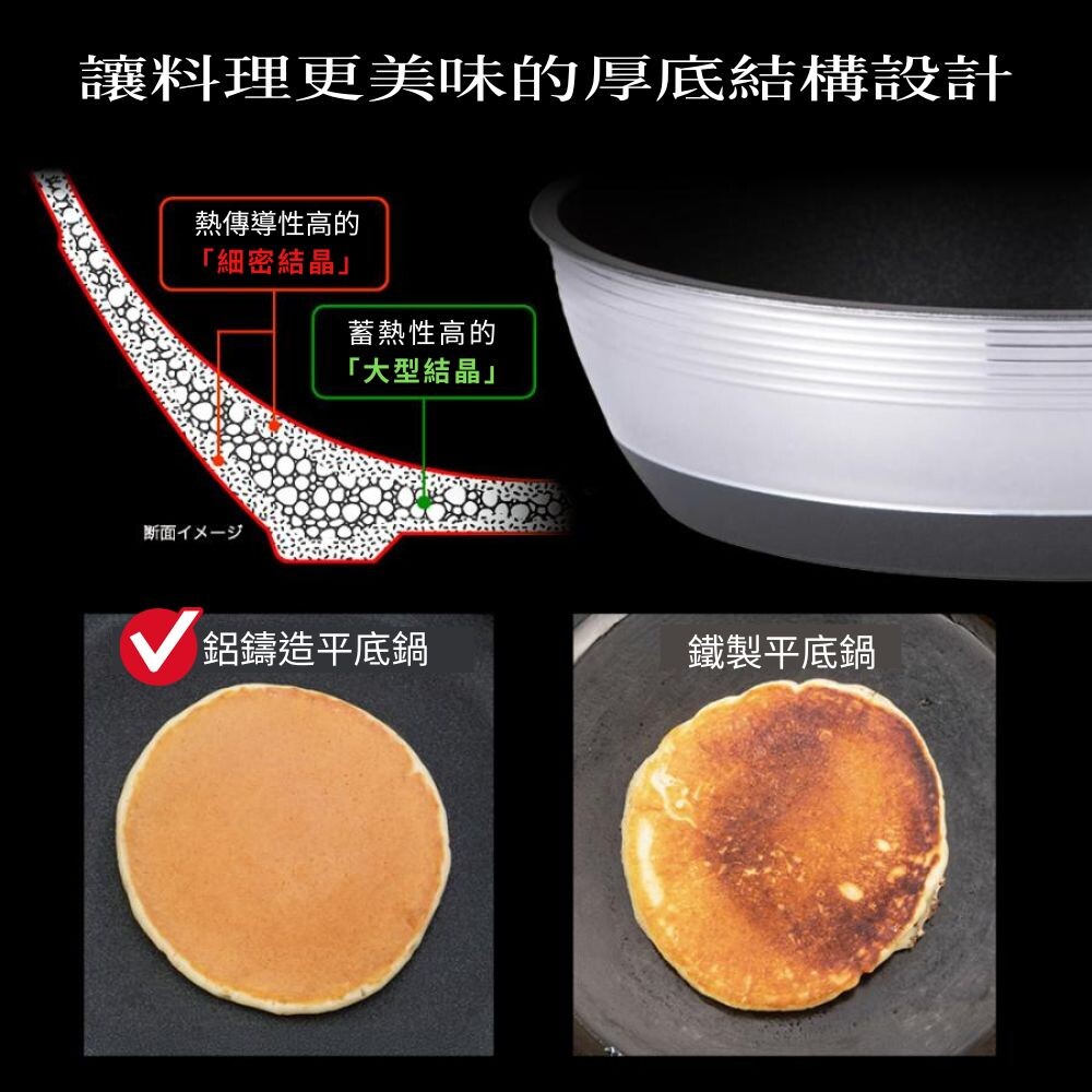 平底鍋由日本國內製造與品質管理,展現北陸鋁業一貫的高品質標準。