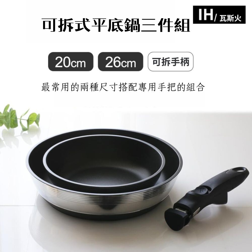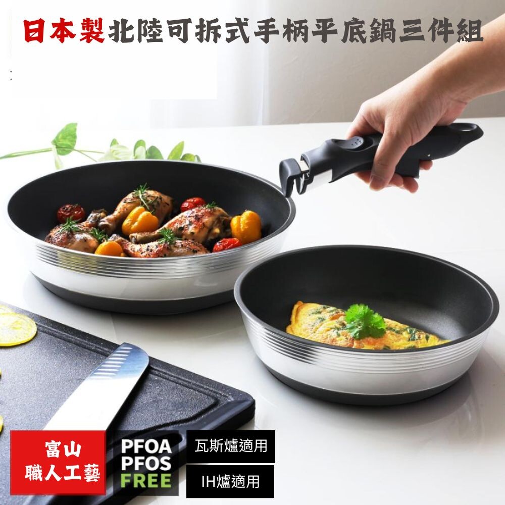 日本製 北陸鋁業 可拆式手柄平底鍋組 IH全熱源對應