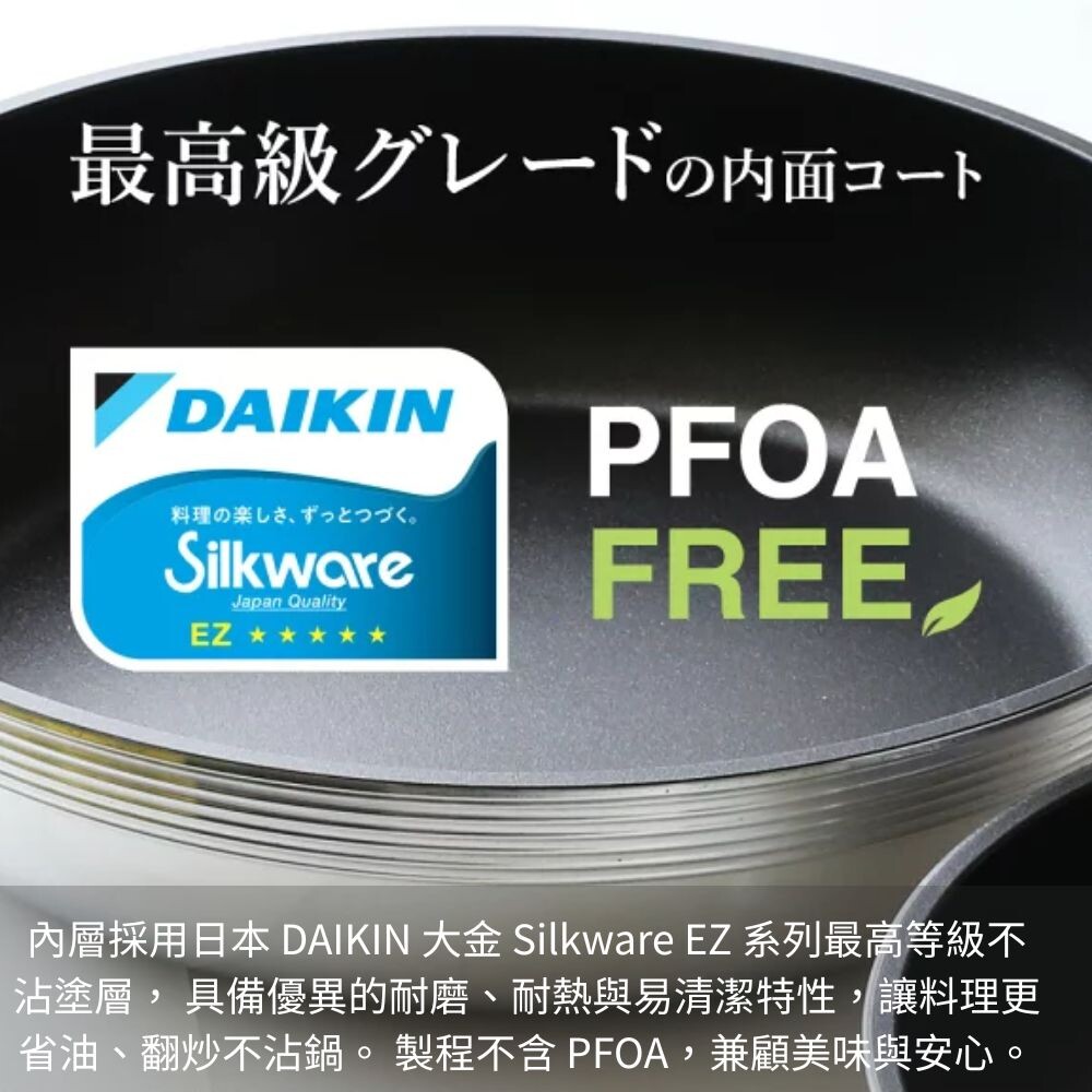 鍋內使用 Daikin 大金最高等級不沾塗層「Silkware EZ」,