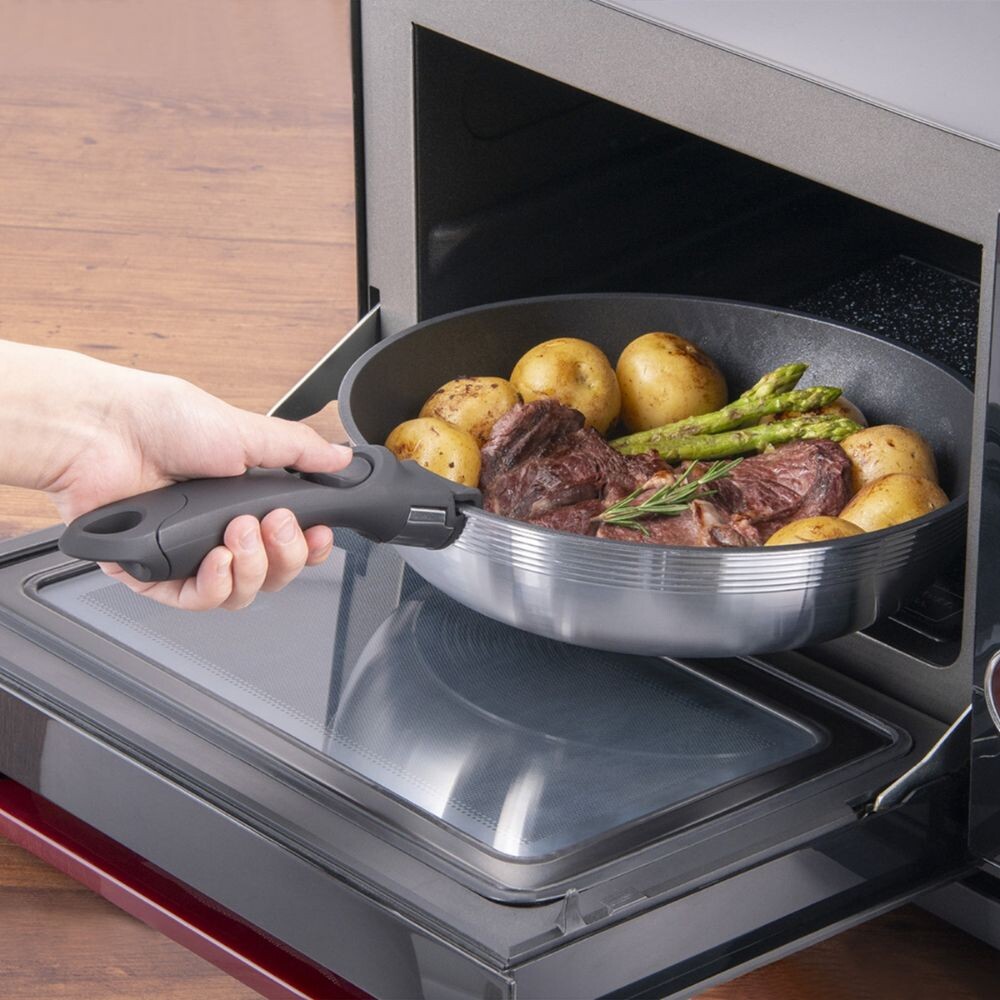 不需手柄時可直接拆下,鍋體可放入烤箱進行焗烤料理,一鍋多用、用途廣泛。