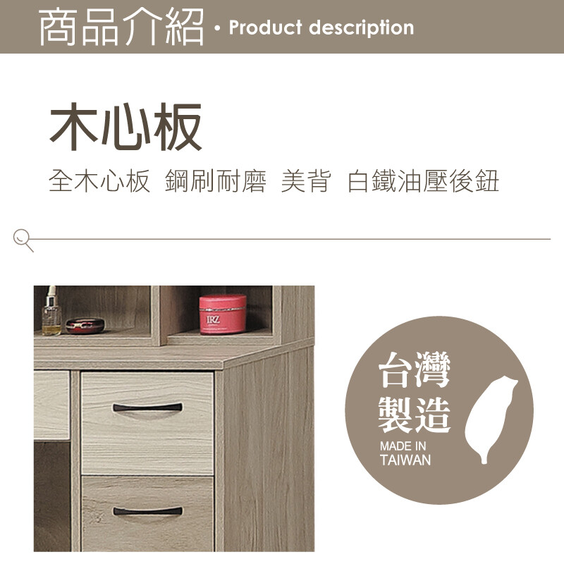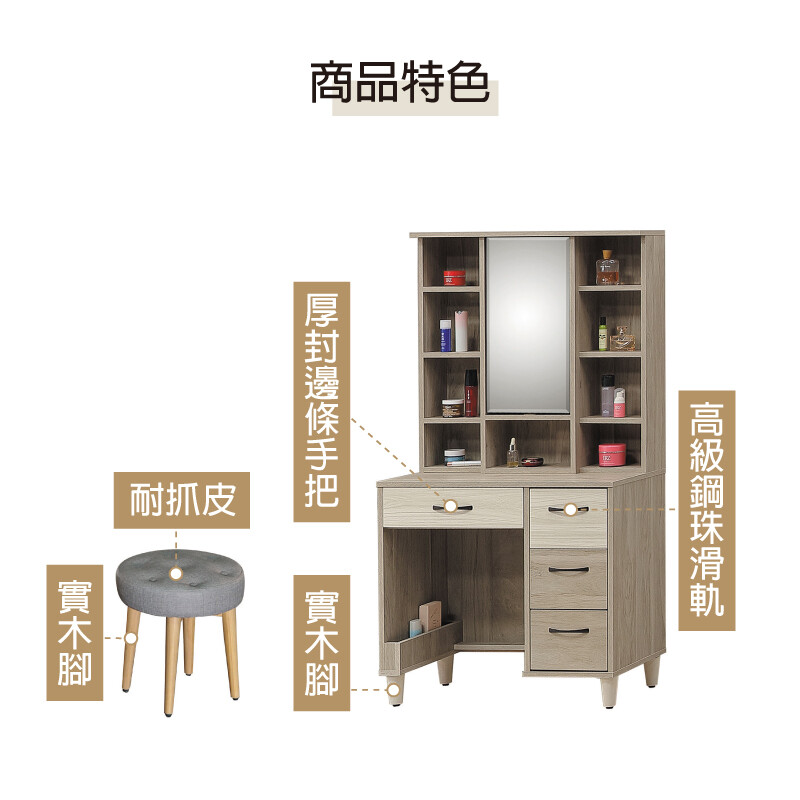 《奈斯家具Nice》184-04-HV E05#淺灰橡2.7尺化妝台/鏡台/含椅