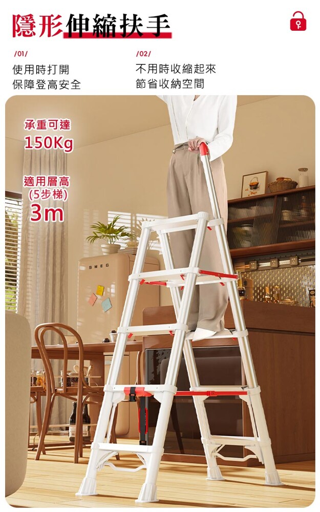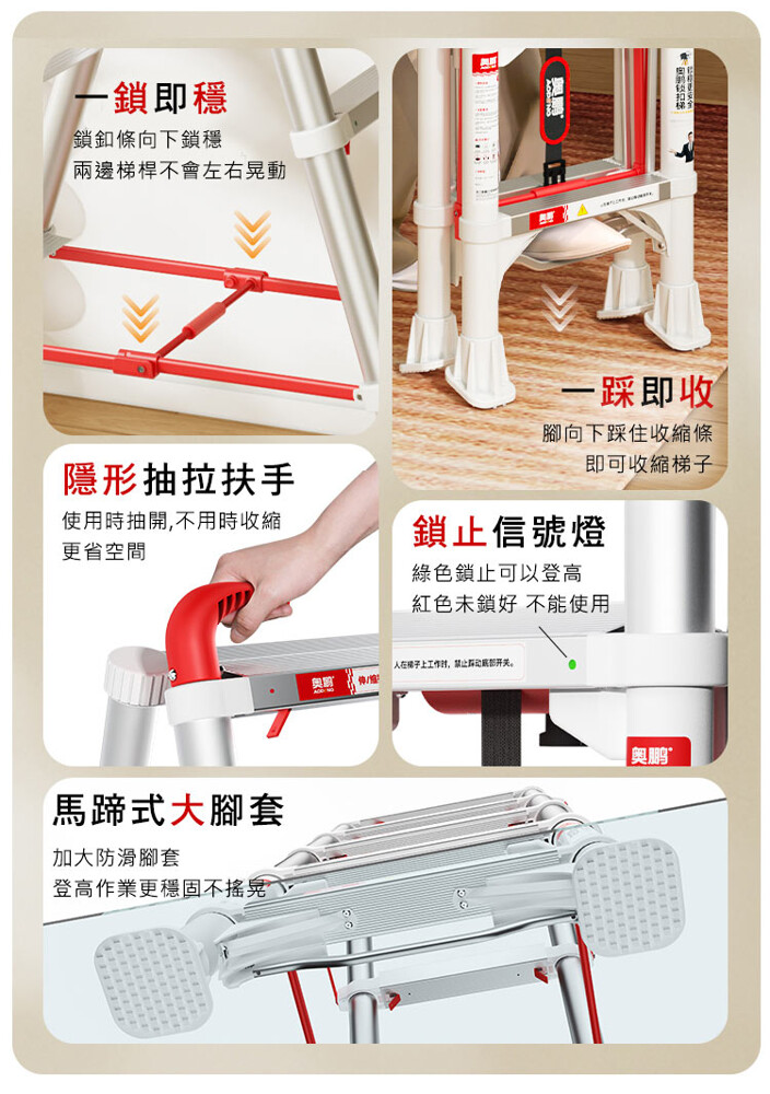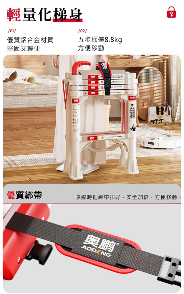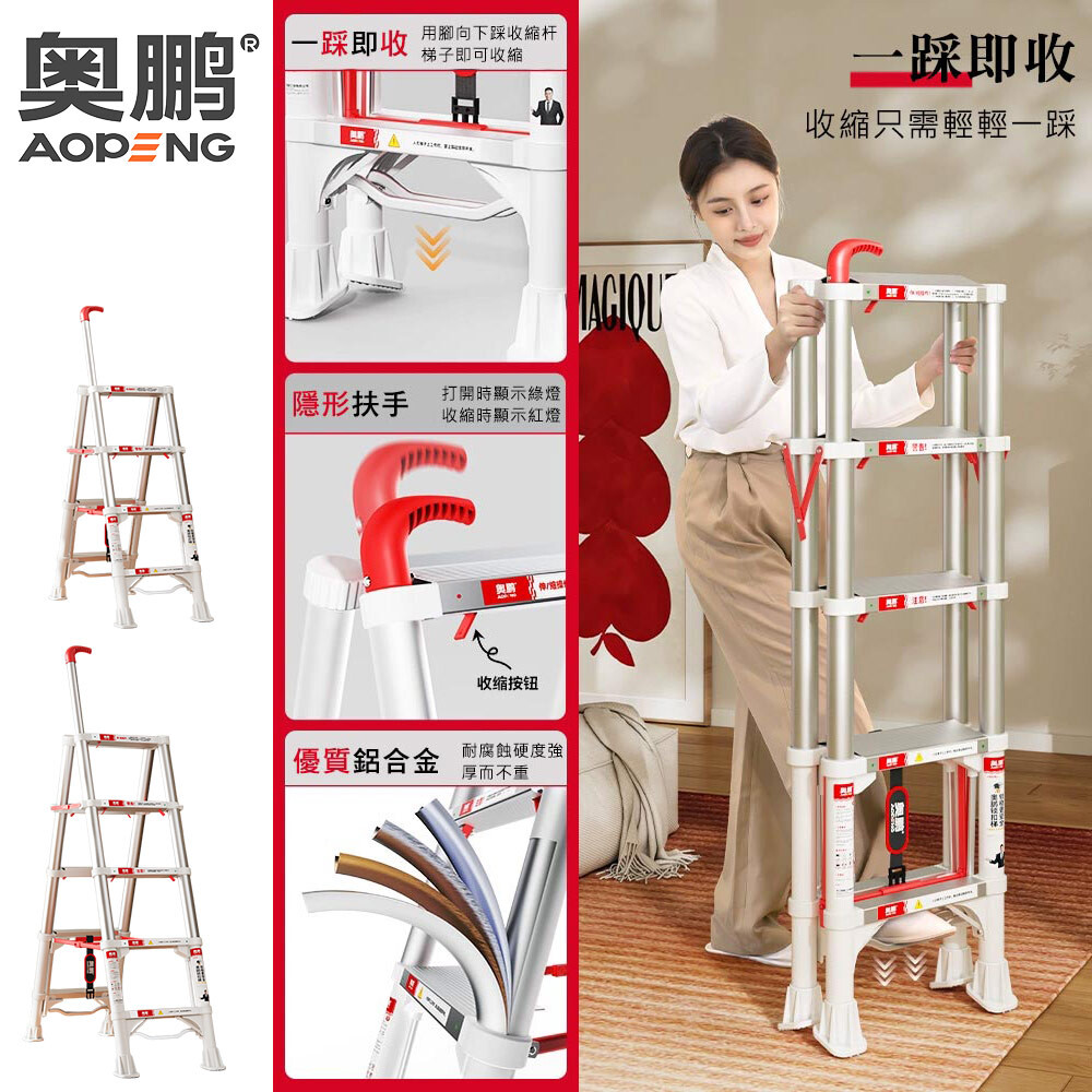 品名:【奧鵬AOPENG】家用鋁合金伸縮五步梯 便攜折疊梯子