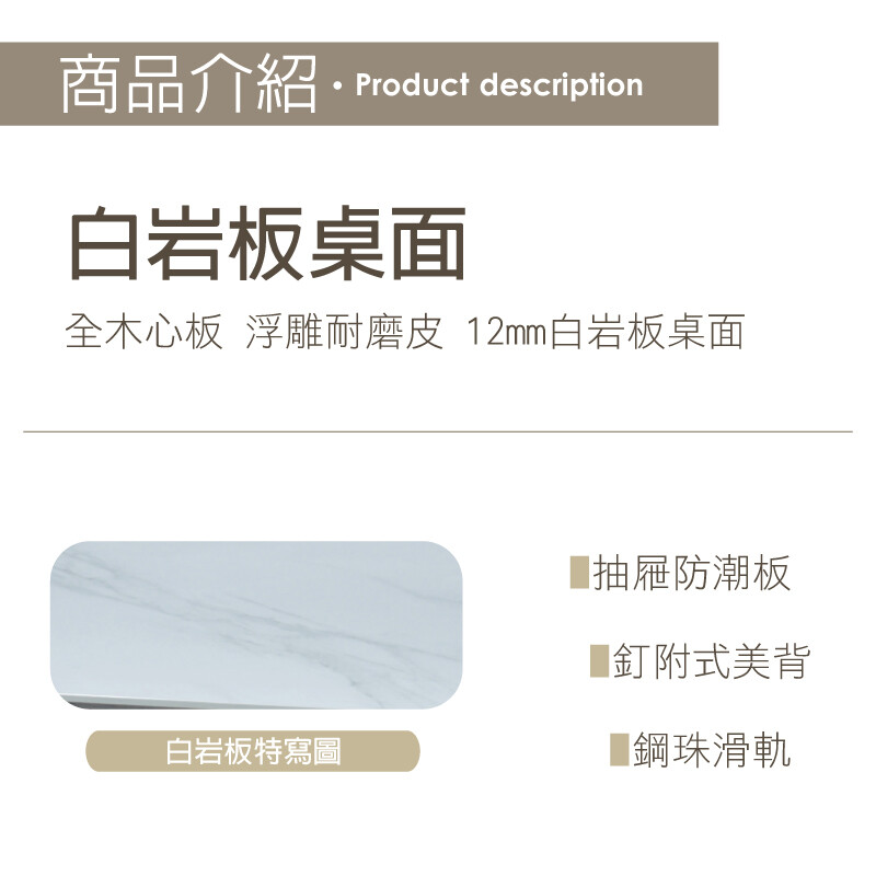 全木心板 12mm白岩板桌面