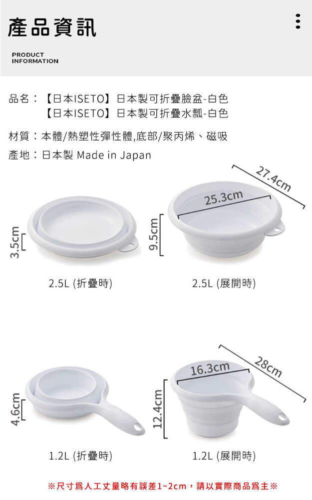 品名:【日本ISETO】日本製可折疊臉盆-白色