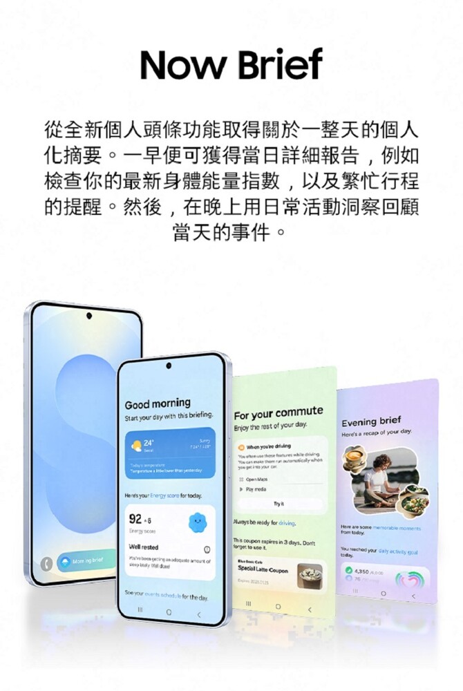 SAMSUNG Galaxy S25+ 再度追加多項 Galaxy AI 應用功能,包括可跨 APP 執行的 AI 語音指令功能,以及新聞資料除了進行摘要與翻譯外,還可以提供「朗讀重點」功能,讓你快速掌握新聞重點消息。另外,塗鴉轉圖像功能也有升級,線可透過輸入文字生成圖像,亦支援匯入圖片後編輯,其他還有再進化的智慧選取功能、口語即搜尋、新版智慧通話助理、個人頭條、Now Bar 等新功能應用。
