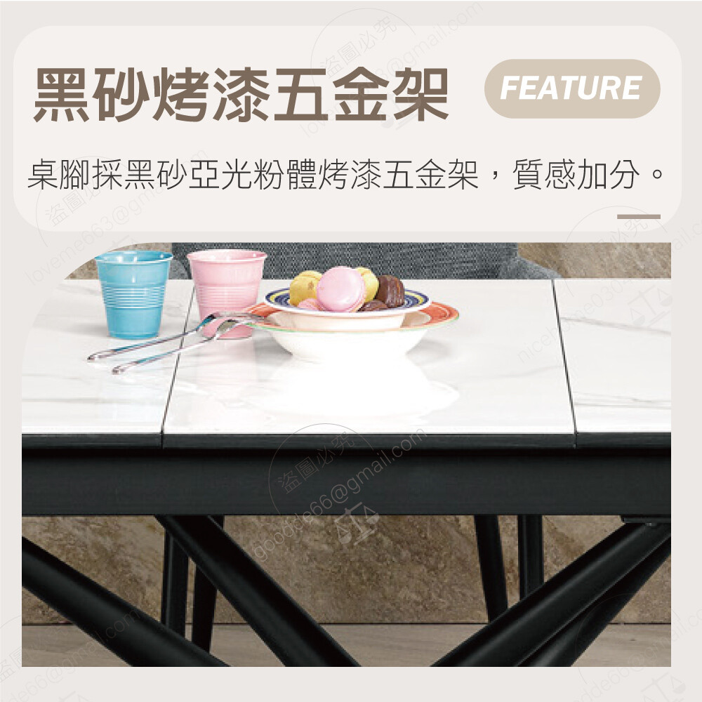 桌腳採用黑砂亞光粉體烤漆五金架