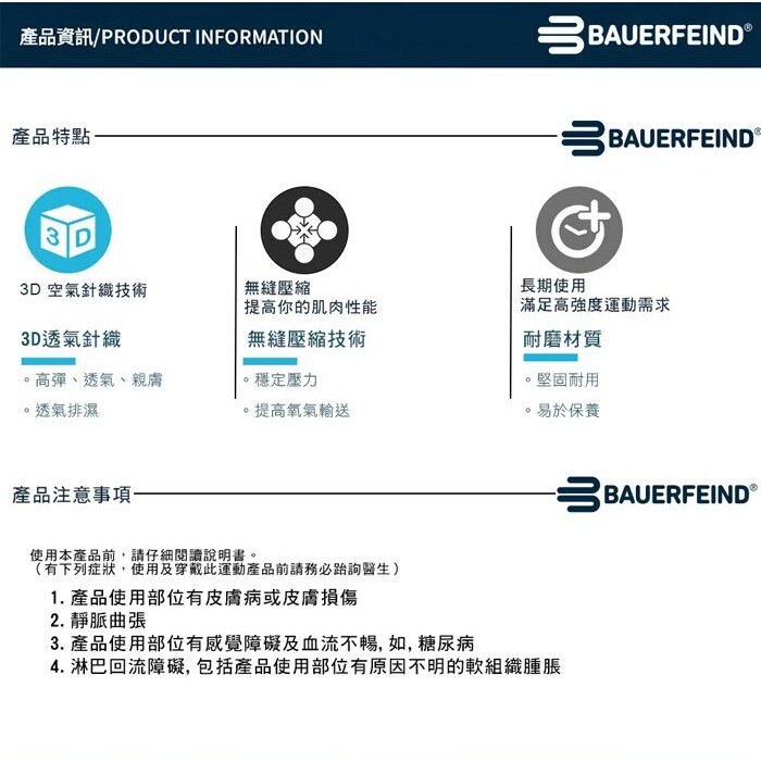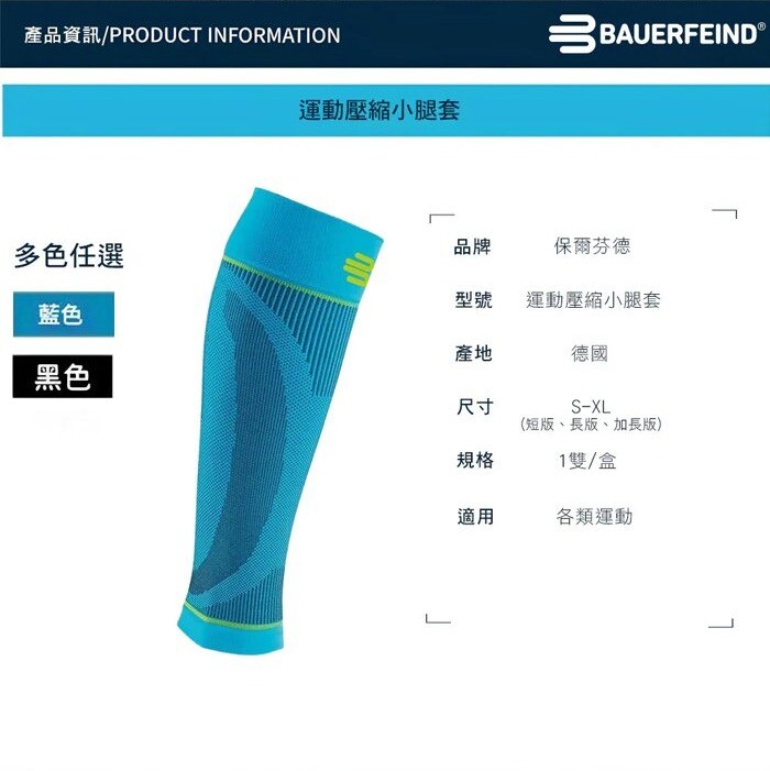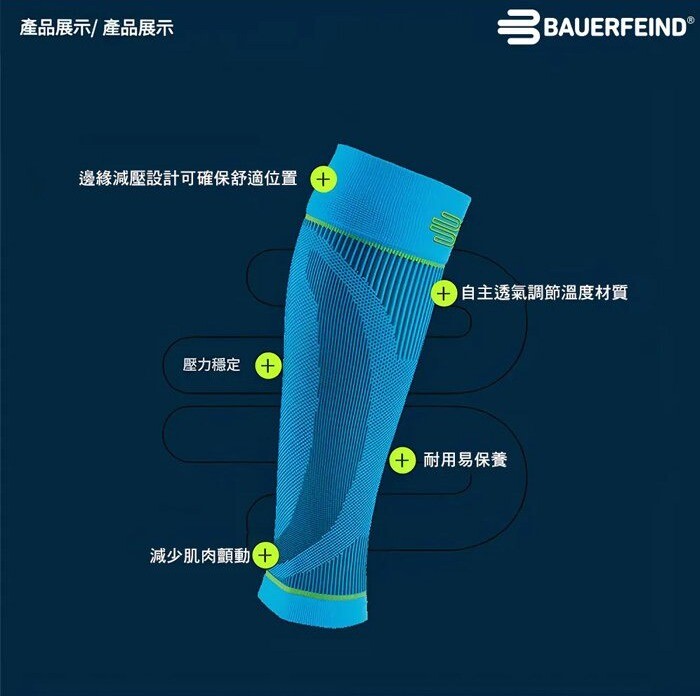◆ Bauerfeind 運動壓縮小腿套融合精準壓縮區域設計