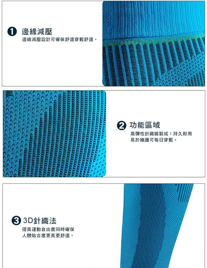 ◆ 穩固貼合 袖套兩端配有矽膠點狀帶和黏性區域 即使在高強度運動中也能確保穩固貼合