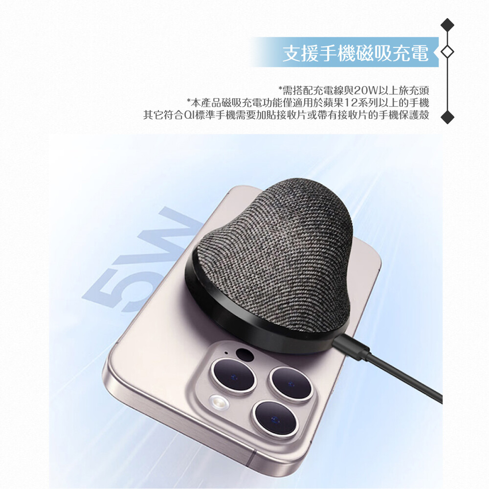 3、支援手機磁吸充電功能,需搭配充電線與20W以上旅充頭。