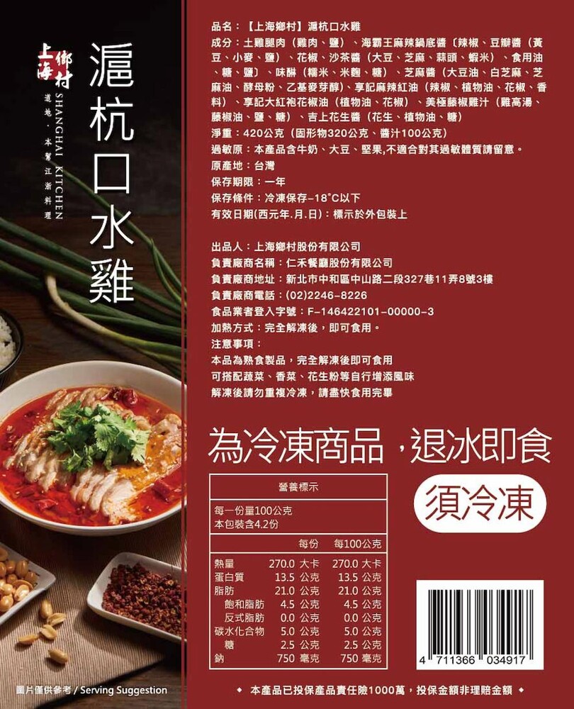 1.商品品名:【上海鄉村】滬杭口水雞(420g)