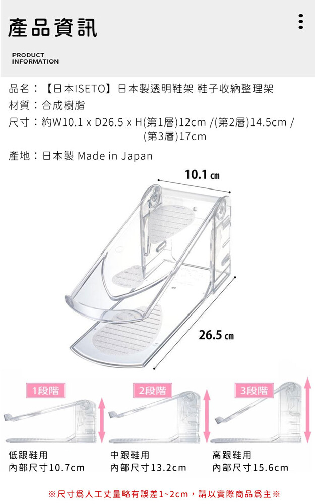 尺寸:約W10.1×D26.5xH(第1層)12cm/(第2層)14.5cm /(第3層)17cm