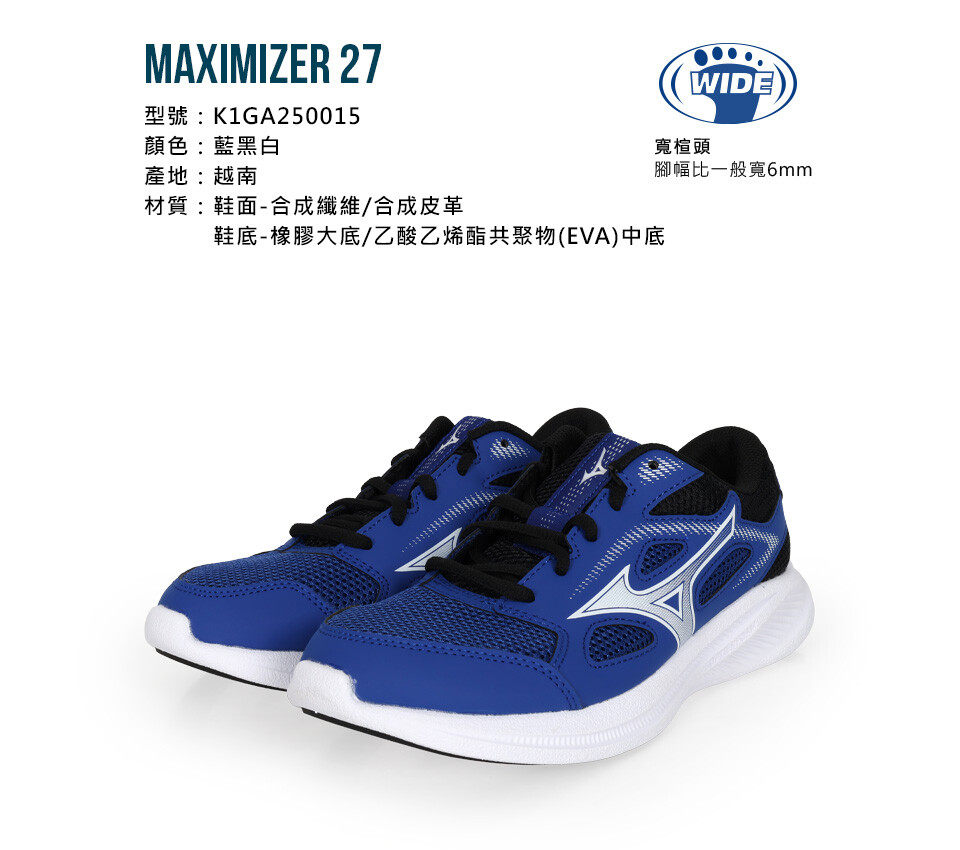 MIZUNO MAXIMIZER 27 男女慢跑鞋-3E-運動 寬楦 反光 藍黑白