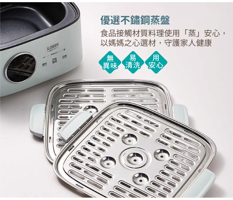 材 質:內鍋:#430不鏽鋼+不沾塗層、蒸盤:#430不鏽鋼