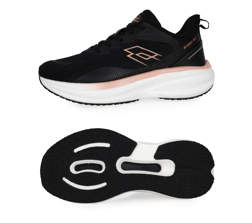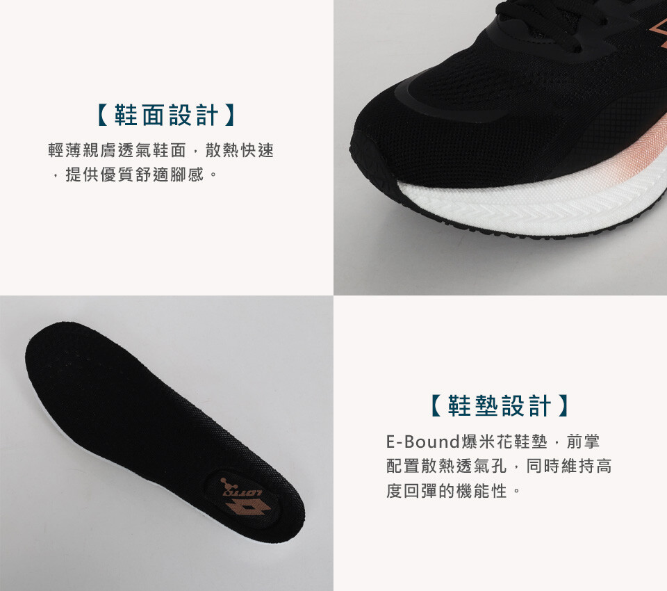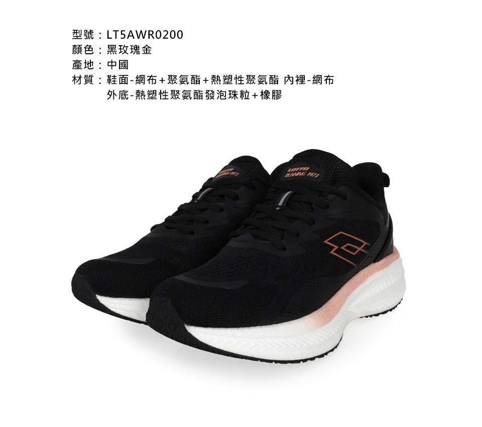LOTTO 女氫馳Q彈避震跑鞋-運動 反光 休閒 黑玫瑰金