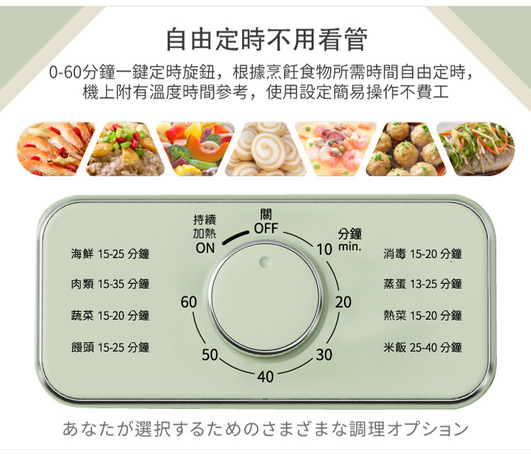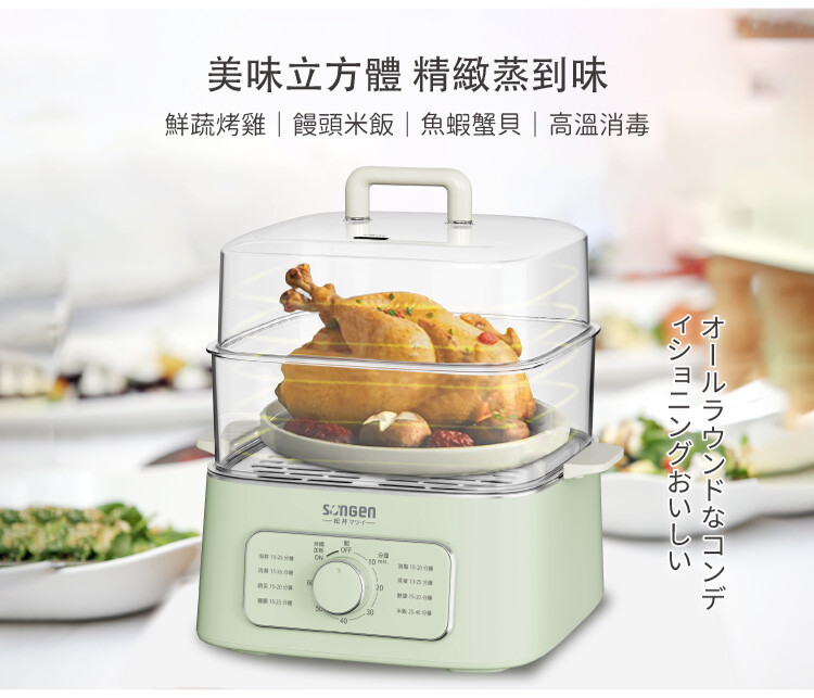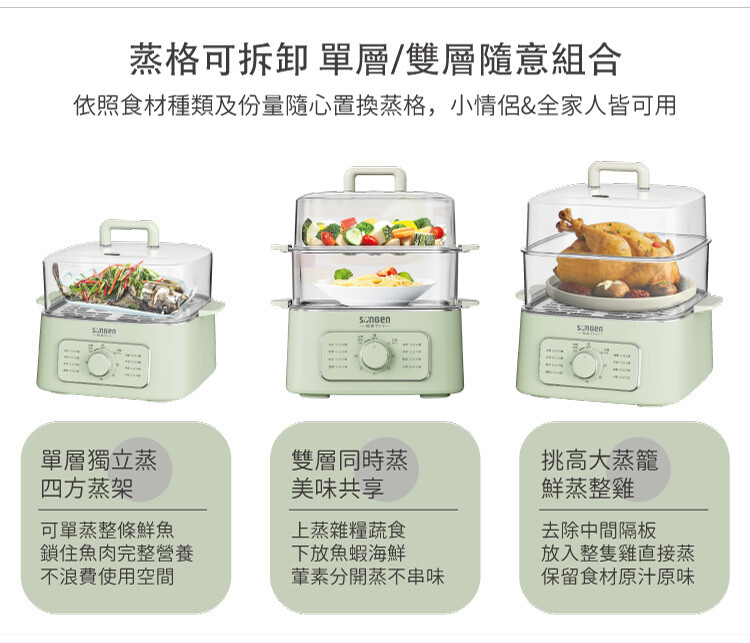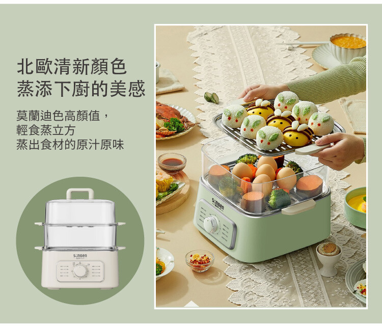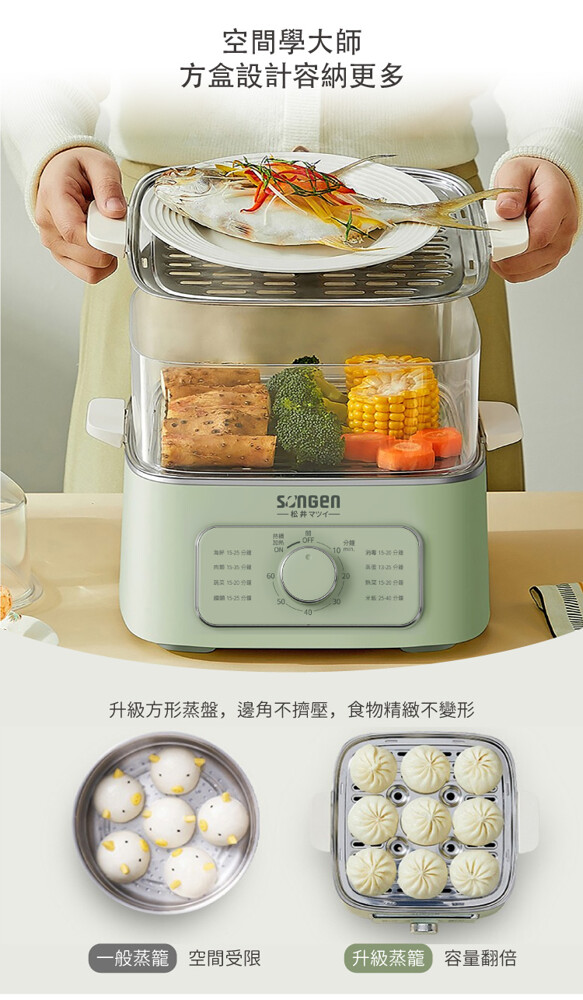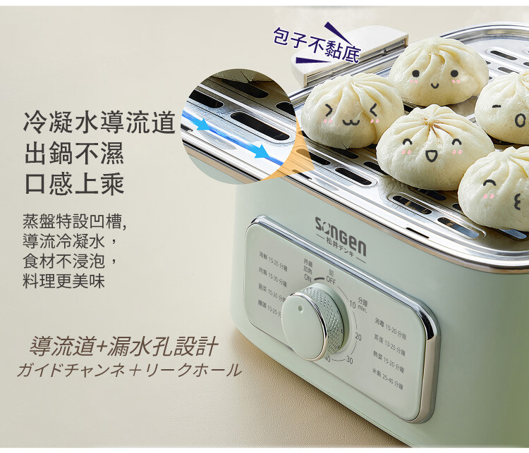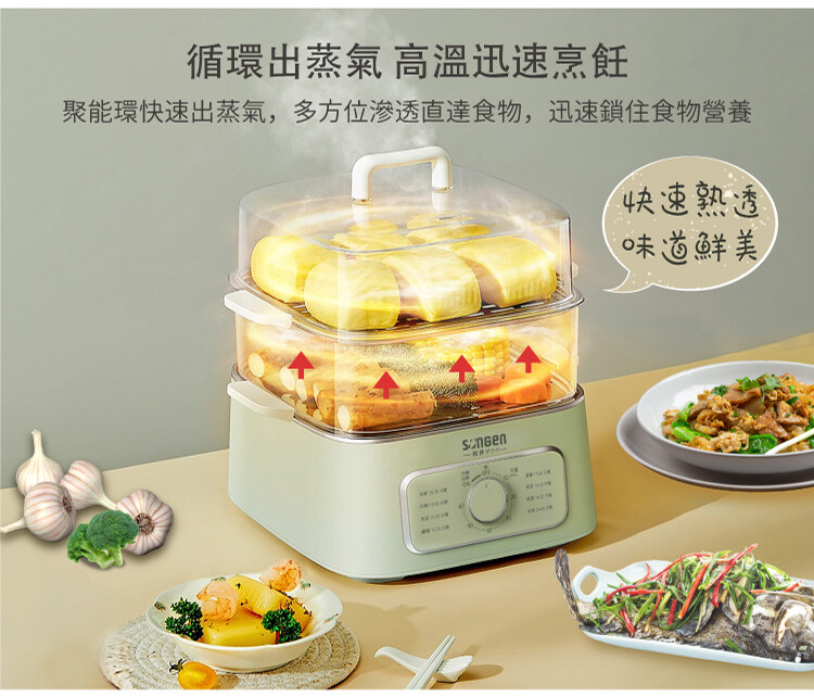容 量:總容量9.3L(蒸籠單層 3.5LX2層、內鍋 2.3L/水位1.7L)