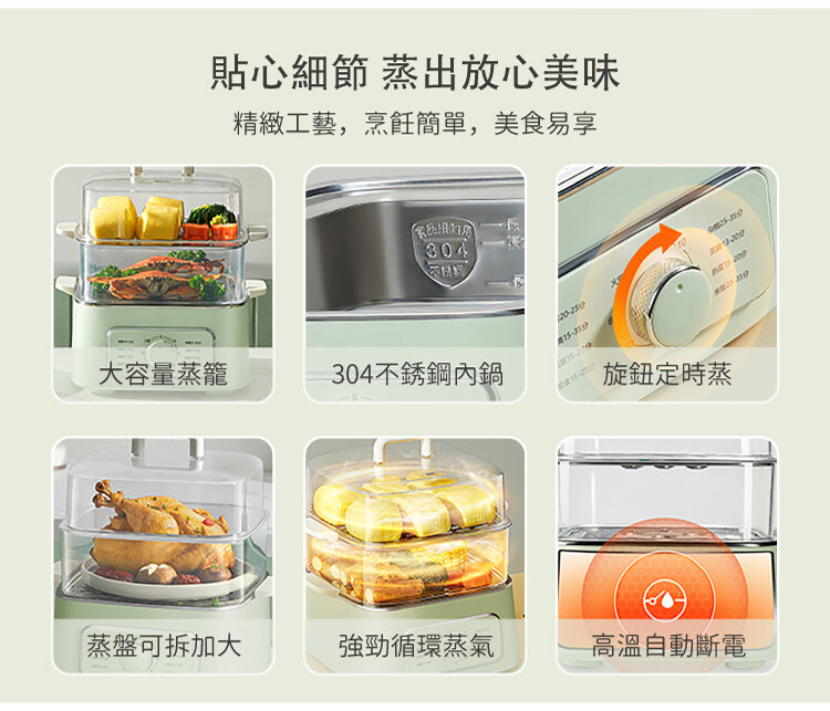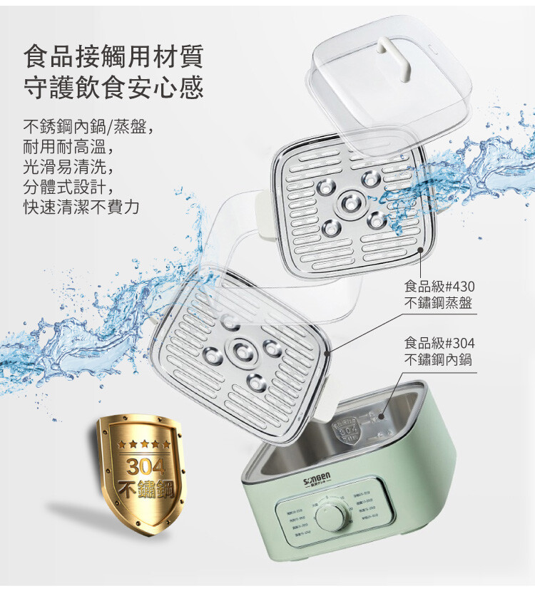 材 質:內鍋:食品級#304不鏽鋼、蒸盤:食品級#430不鏽鋼