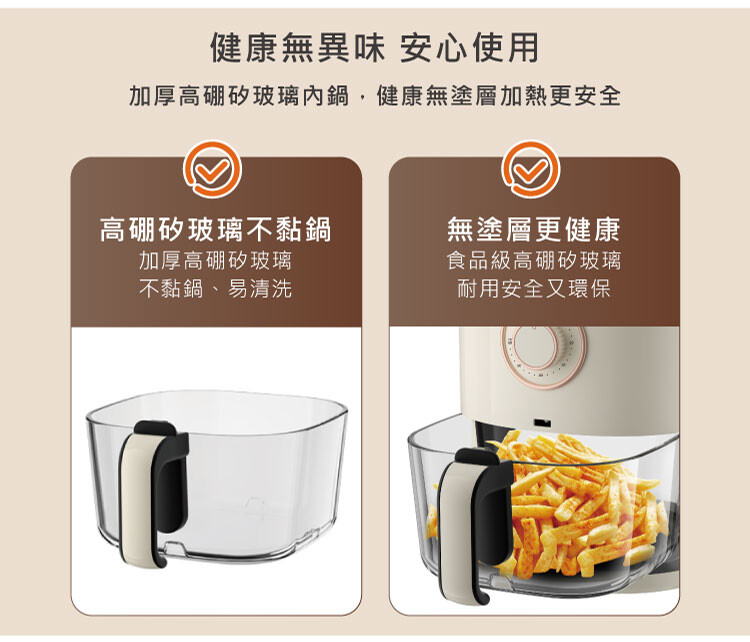⚠️請問玻璃氣炸鍋要如何清潔呢? 產品機身外觀的部分,可使用一般擦拭布搭清潔劑使用。而加熱管下方防護網如有油漬需要清潔,建議可在產品使用完成後,趁護網有餘溫(請注意安全),可用一般擦拭布搭配天然清潔劑擦拭。