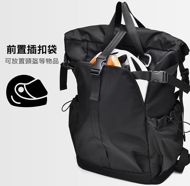 ◆前置插扣袋 可放置頭盔等物品;束口側袋 可放置水壺/雨傘等物品