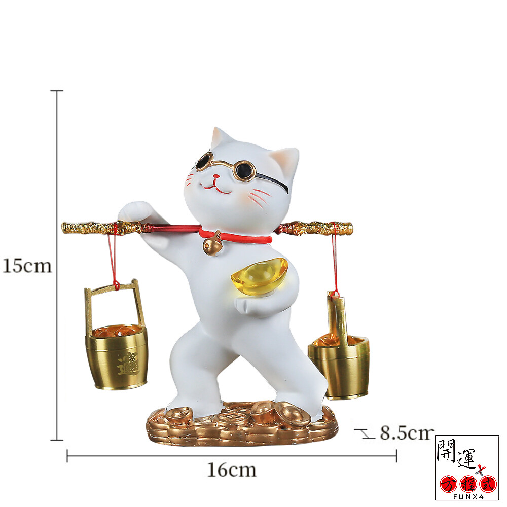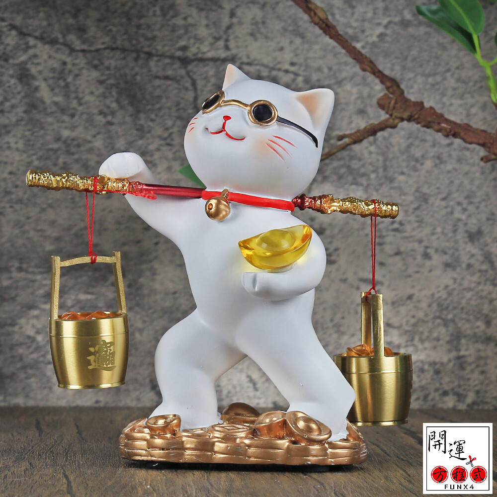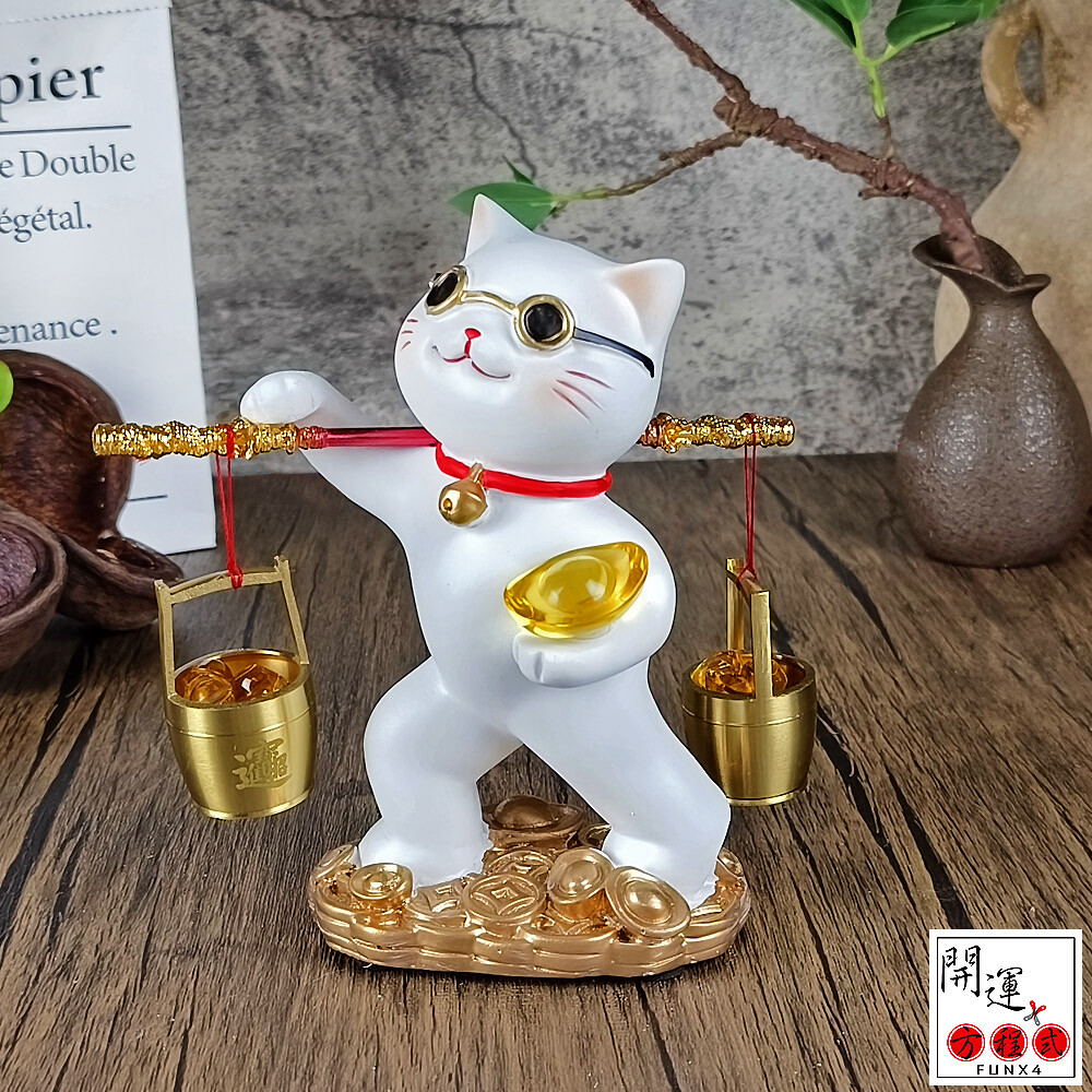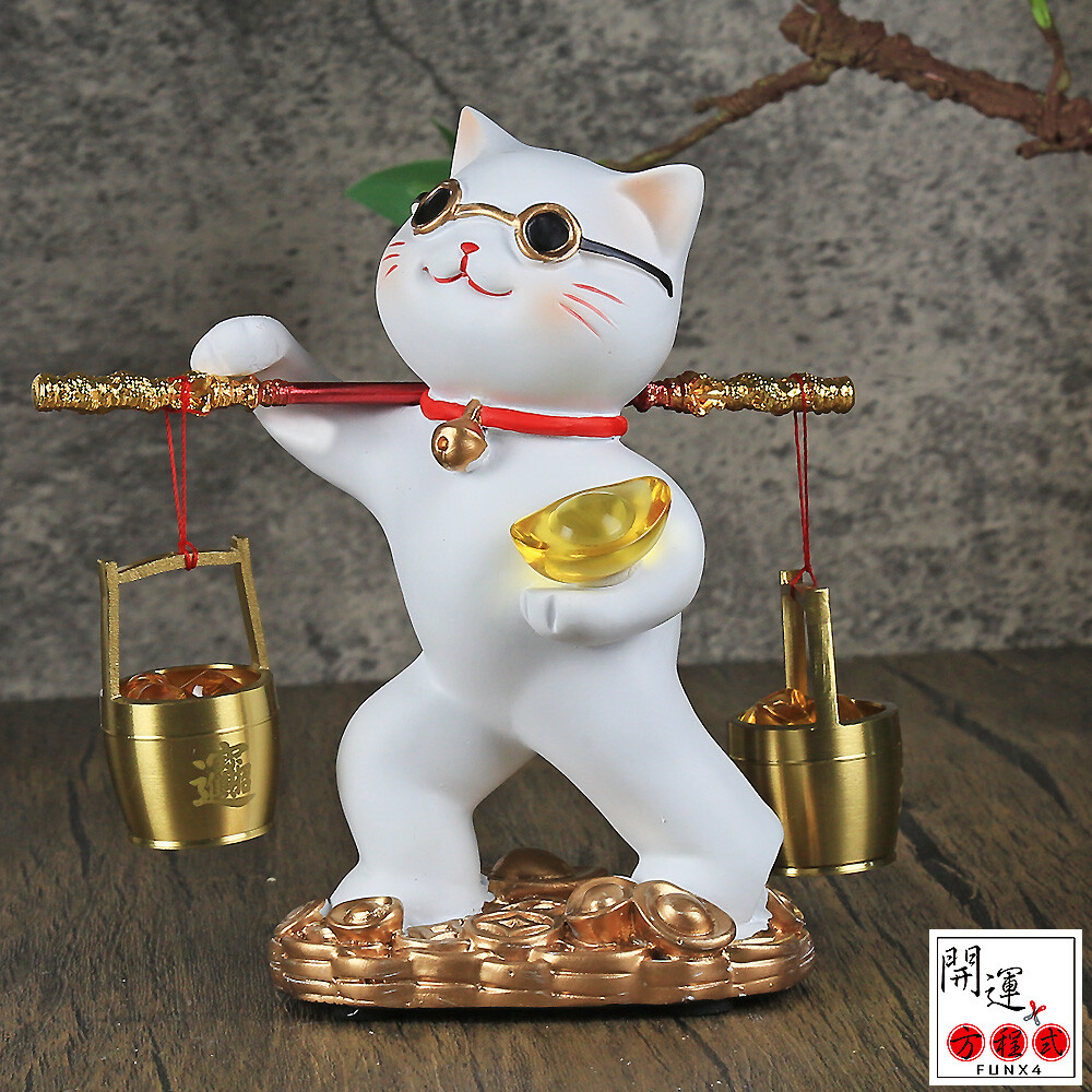 說中,商家的招財貓舉右手可以招白天的來客,舉左手則是招來作夜間生意或特種行業的客人;另外舉右手象徵招財、錢財幸福到來;左手則是象徵招人、客人絡繹不絕、買氣旺。台灣商家既愛招財、又愛人潮的經營模式,台灣業者興起台式招財貓,又招財又招客的舉起雙手好像在喊萬歲,外加肚子上再掛個金元寶的