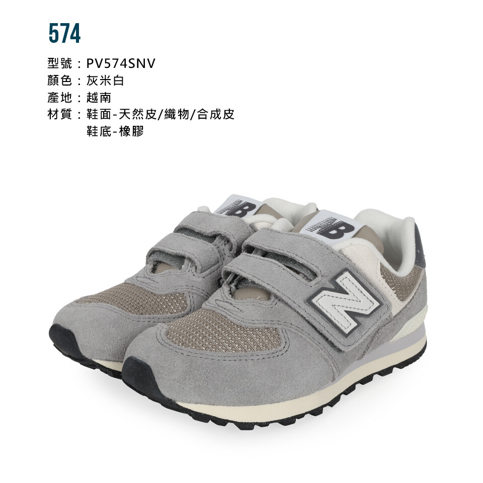 NEWBALANCE 男中童復古慢跑鞋-WIDE-574系列 魔鬼氈 寬楦 灰米白