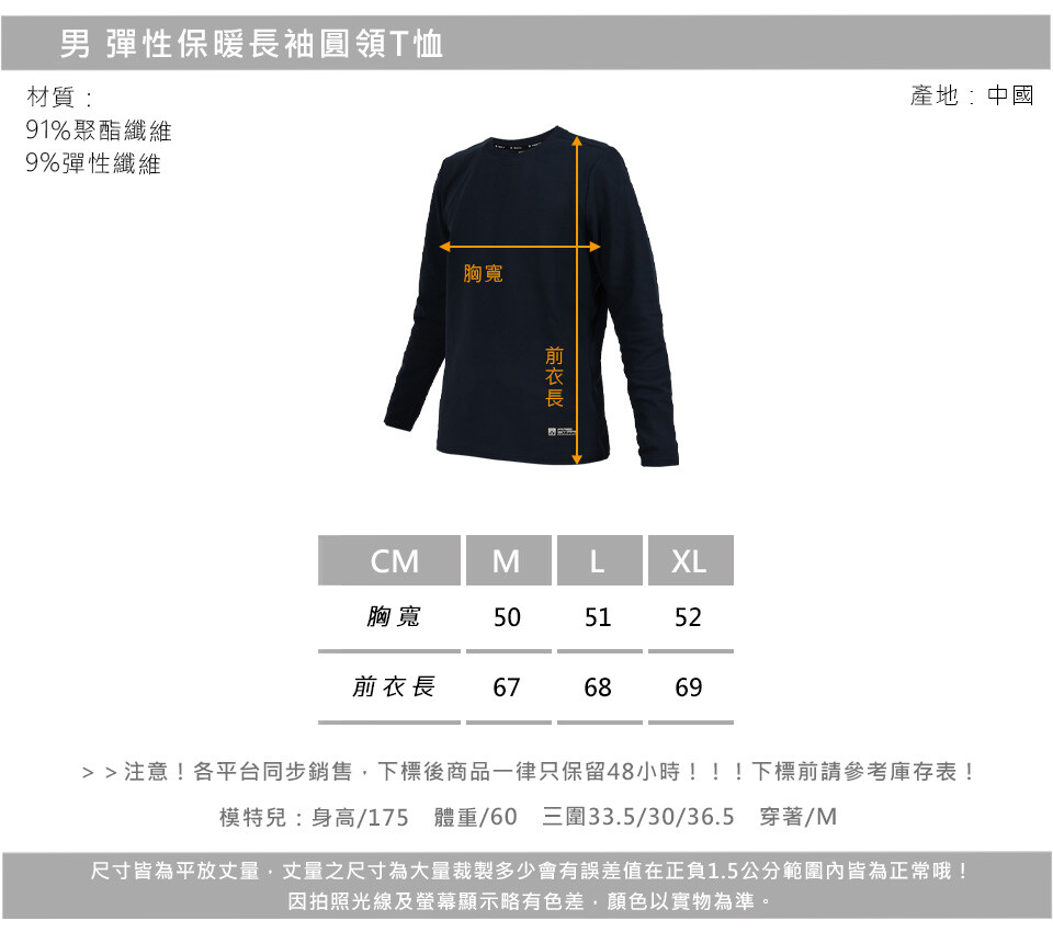 FIRESTAR 男彈性保暖長袖圓領T恤-長T 休閒 慢跑 路跑 丈青