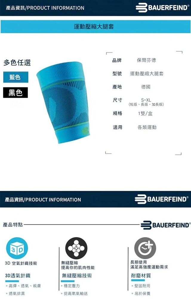 ◆ Bauerfeind 運動壓縮袖套為手臂 大腿及小腿提供卓越保護