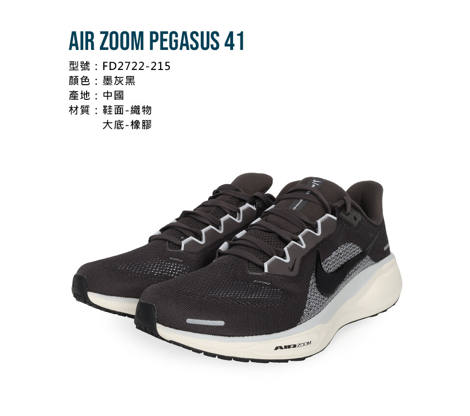 NIKE AIR ZOOM PEGASUS 41 男緩震慢跑鞋-路跑 運動 墨灰黑