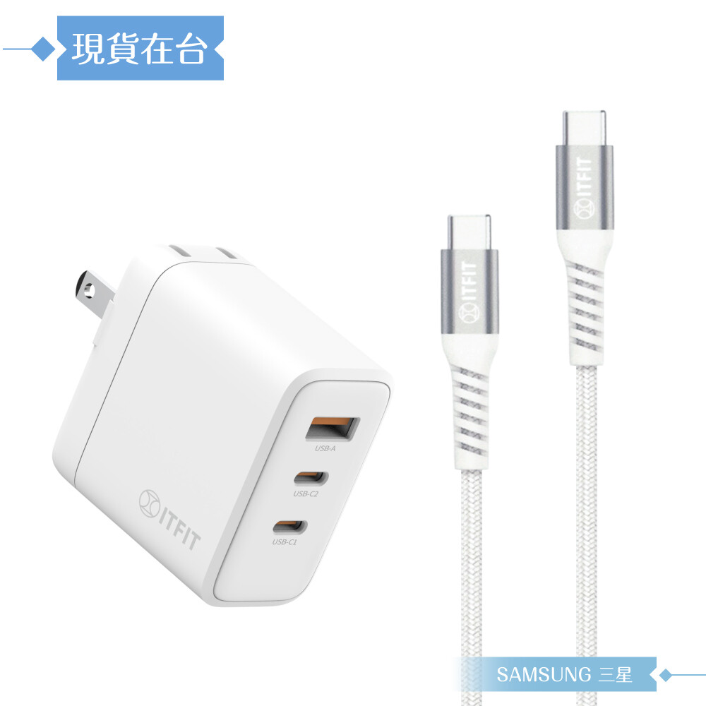 商品名稱:ITFIT 65W 三孔超快充組 -白 (附充電器+5A 100W Type C快充線)