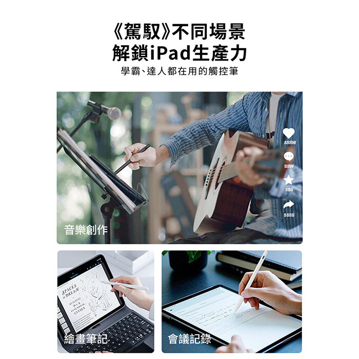 內容物:觸控筆*1 / USB-A to Type-C充電線*1(約33cm) / 替換筆尖*1 / 筆尖套*1 / 說明書*1