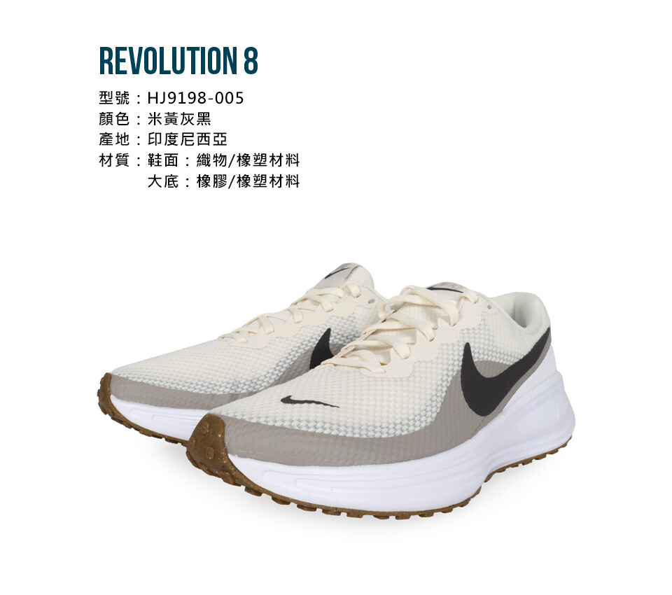 NIKE REVOLUTION 8 男緩震慢跑鞋-運動 休閒 米黃灰黑
