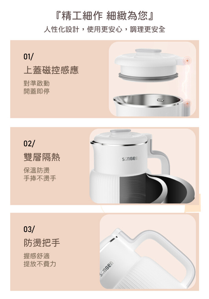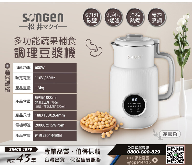 容 量:總容量1000ml(燒開水上限700ml,豆漿/烹調上限:550ml)