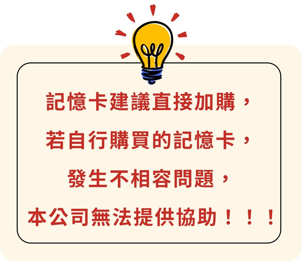 ■ ■ 記憶卡建議直接加購,一定幫您測試好才出貨,避免會有記憶卡不相容的情況■ ■