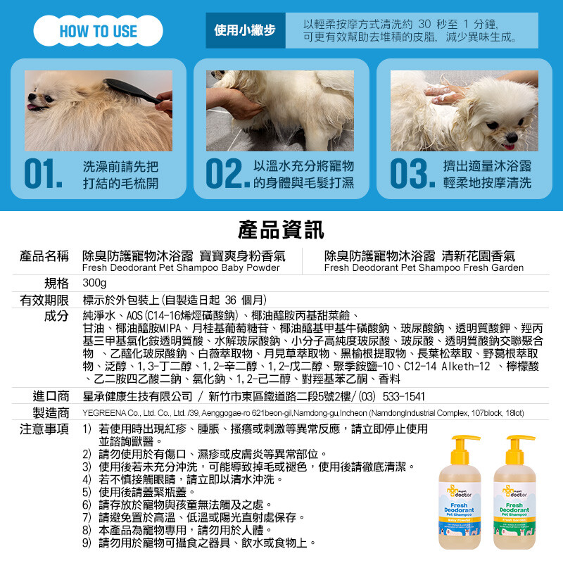 韓國專利配方,溫和清潔 × 舒緩肌膚,毛孩專屬除臭配方。