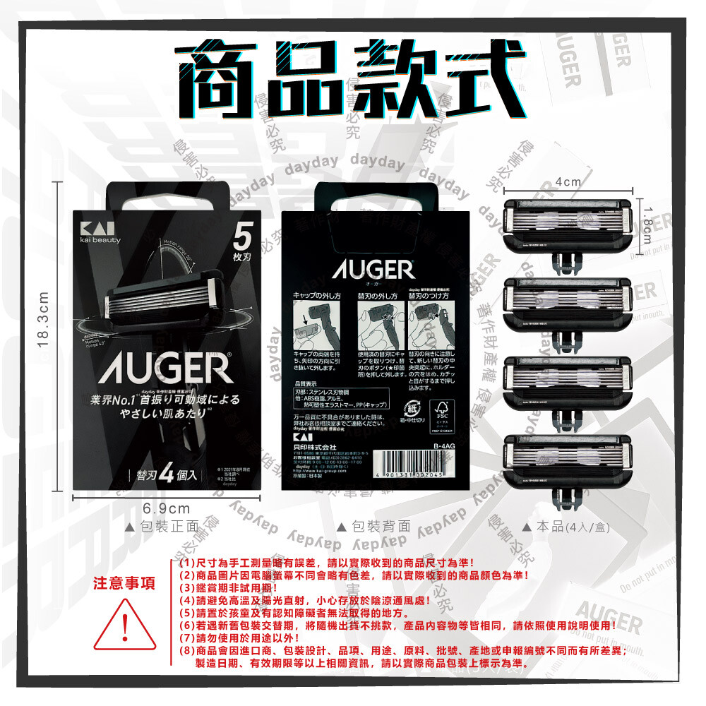 ●品名:AUGER男士修容刮鬍刀替換刀片