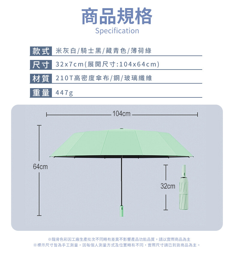 款式:米灰白/騎士黑/藏青色/薄荷綠 (24骨黑膠強韌雙龍骨)