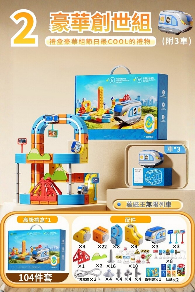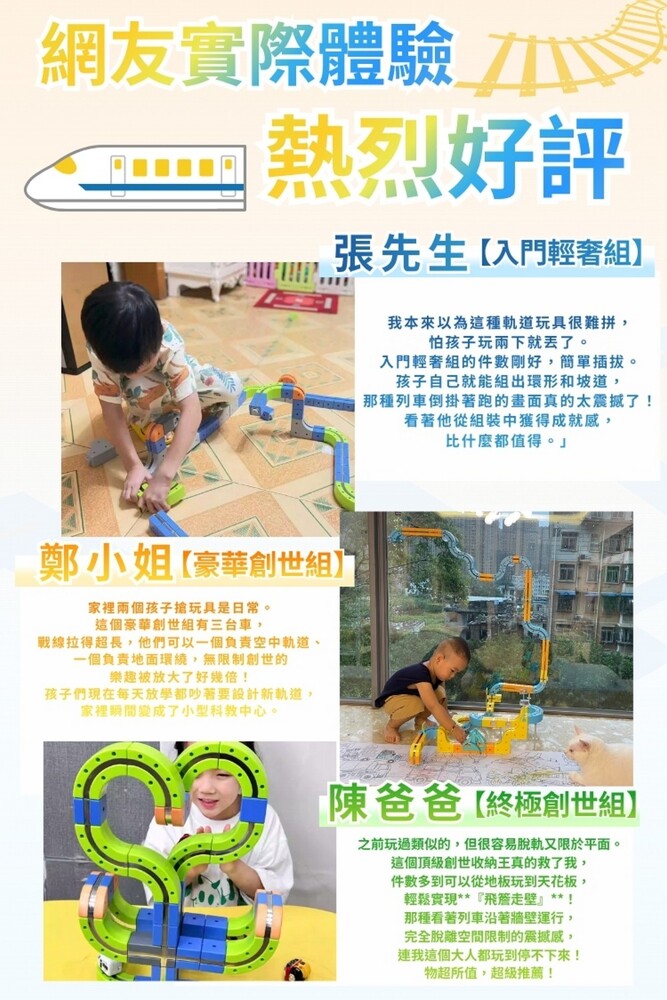 【超穩定設計】:即使在高速彎道或坡道,磁吸力也能確保列車絕不脫軌,給孩子持續不斷的成就感。