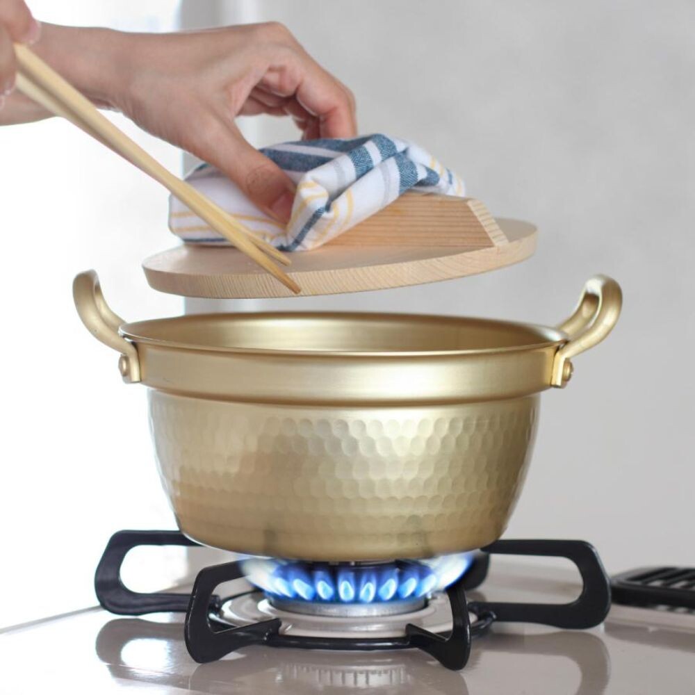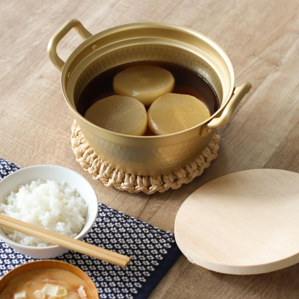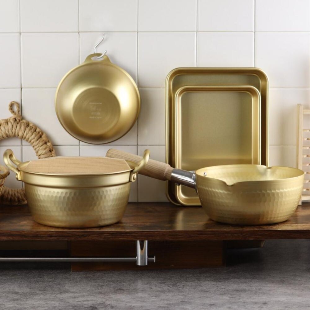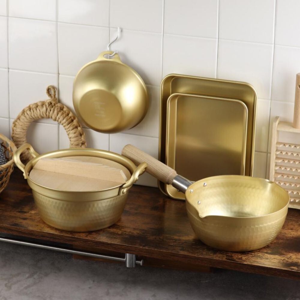 來自日本北陸的 小伝具雪平鍋,以金色槌目紋展現懷舊氣息,