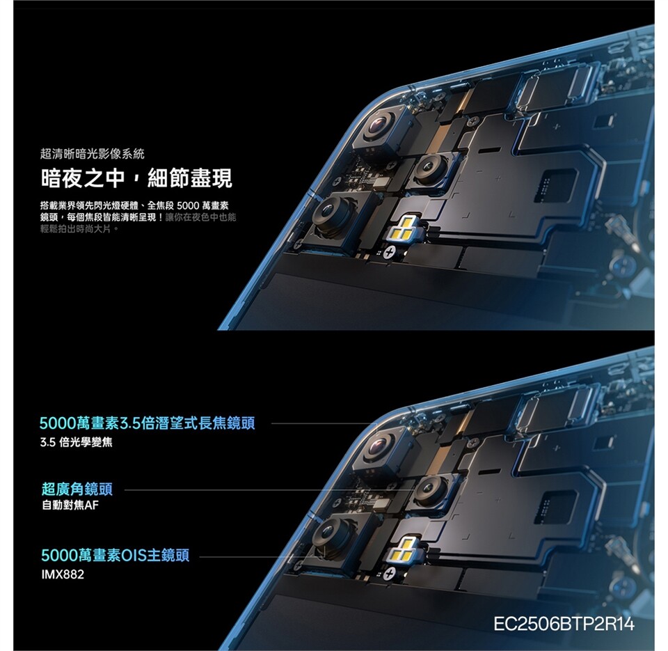 ◎ 後置 5,000 萬畫素鏡頭 + 800 萬畫素超廣角鏡頭 + 5,000 萬畫素長焦鏡頭