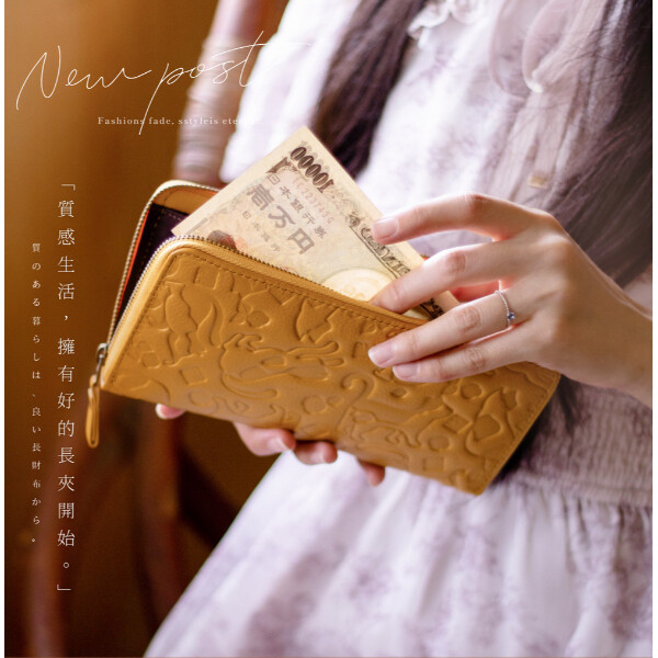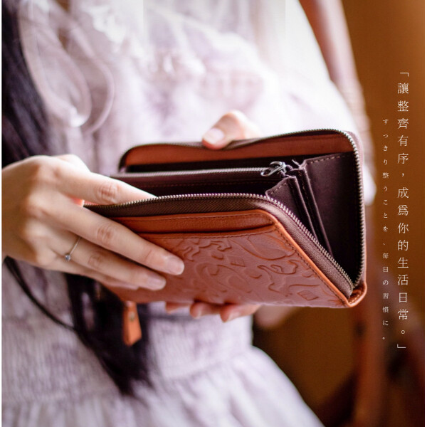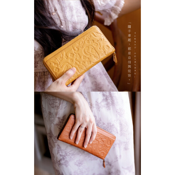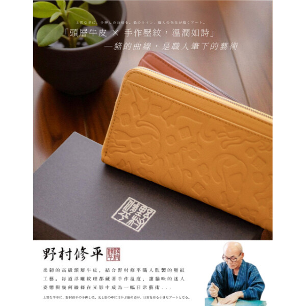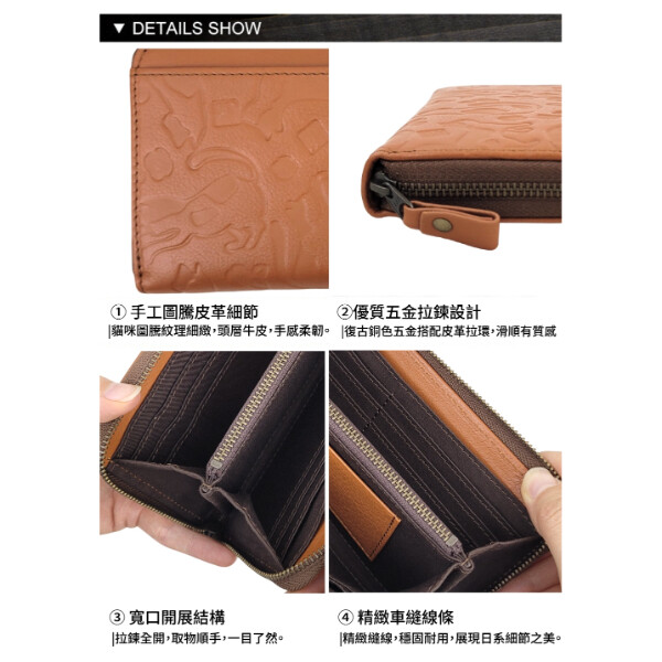 商品名稱:【喜番屋】日貨-真皮頭層牛皮貓咪圖騰拉鍊長夾皮夾錢包女夾-野村修平【LH1143】